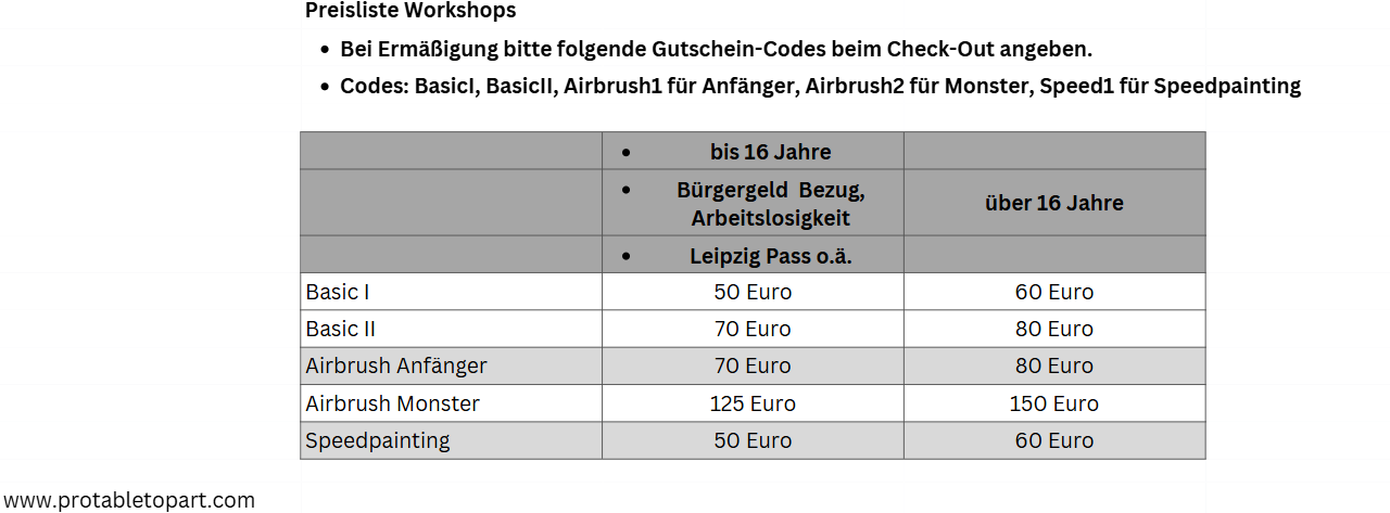 Bei Ermäßigung den Nachweis bitte am Workshoptag vorzeigen: Leipzig-Pass, Personalausweis für den Altersnachweis, AL-Nachweis o.ä.